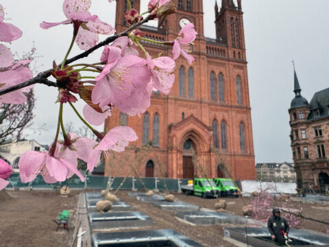Der Schlossplatz in Wiesbaden bekommt seit dieser Woche über 20 neue Bäume. Das hat die hessische Landeshauptstadt mitgeteilt. Für die