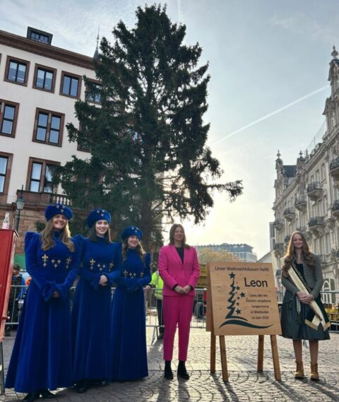 Vor dem Wiesbadener Rathaus steht ab heute der Weihnachtsbaum. Der diesjährige Baum ist eine Rotfichte. Das hat die hessische Landeshauptstadt