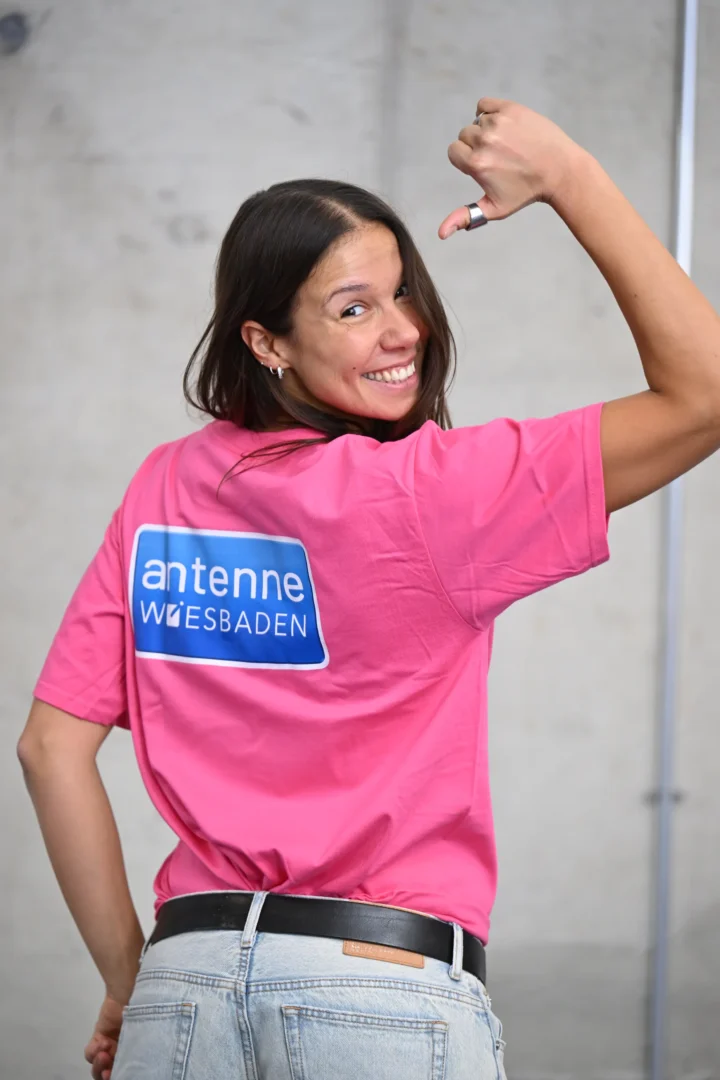 Das Antenne Wiesbaden T-Shirt ist ein echter Hingucker. Es ist sowohl vorne als auch hinten bedruckt. Auf der Vorderseite findet sich der Slogan Antenne Wiesbaden. Mehr muss man nicht anhaben. Auf der Rückseite ist auf Schulterhöhe das Antenne Wiesbaden Logo abgedruckt. Knallige Farbe und ein echter modischer Akzent.